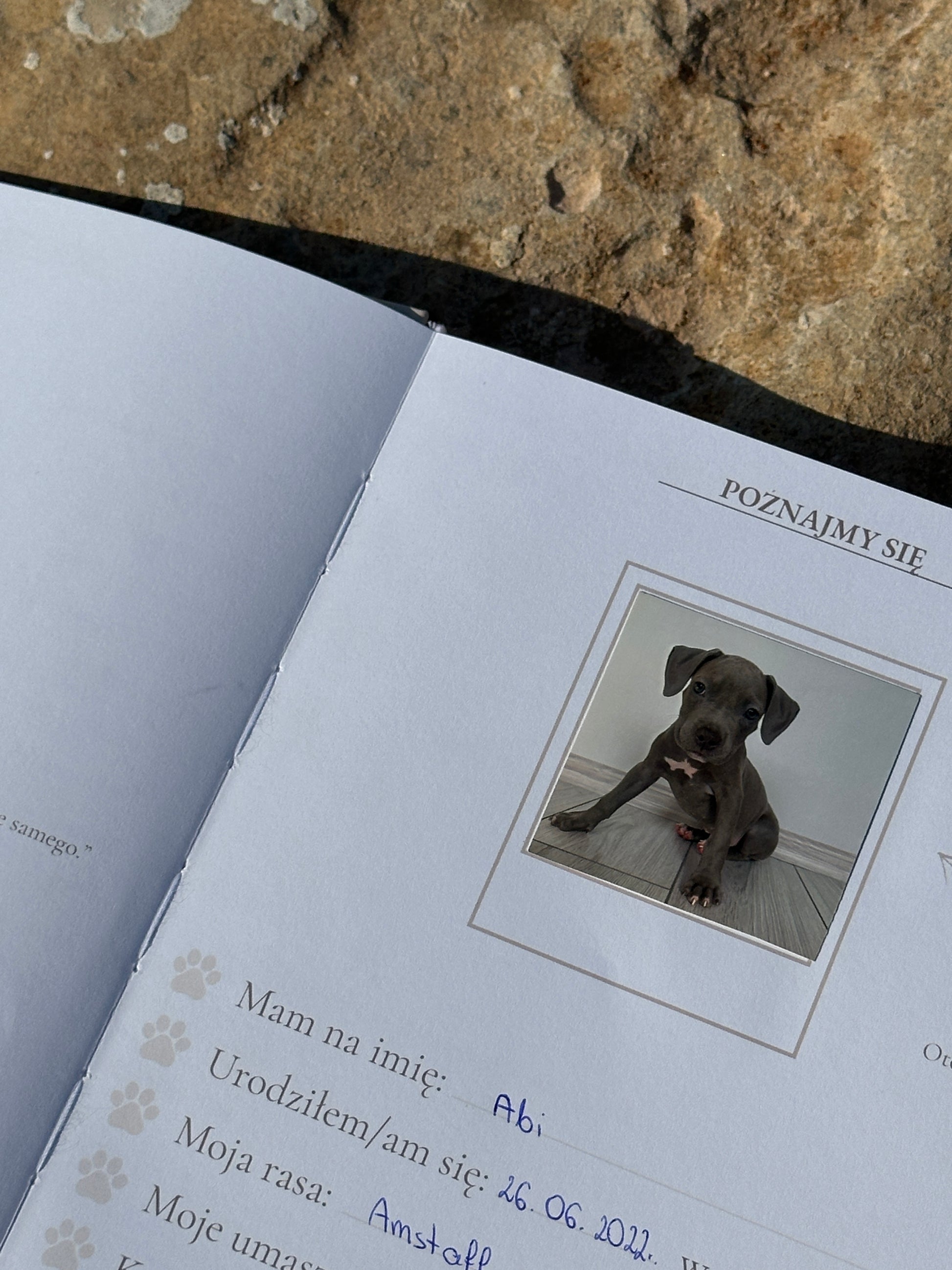 Pamiętnik został zaprojektowany głównie z myślą o szczeniakach – aby dokumentować ich rozwój od pierwszych chwil.